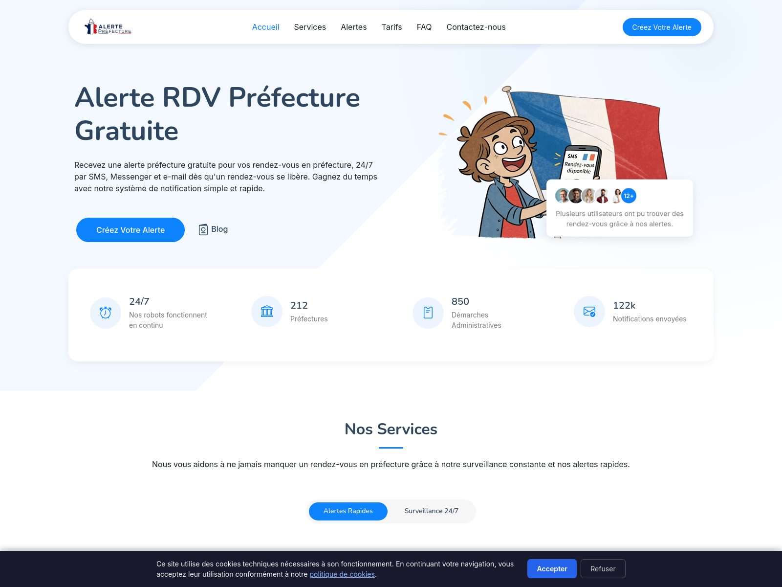 alerte-prefecture是一个帮助在法国的外籍人士自动获取护照办公室预约提醒的免费工具。