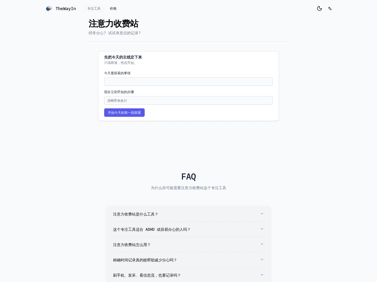 注意力收费站是一款帮助ADHD用户通过记录分心时间来提升专注力的工具,实现自我觉察与注意力管理。