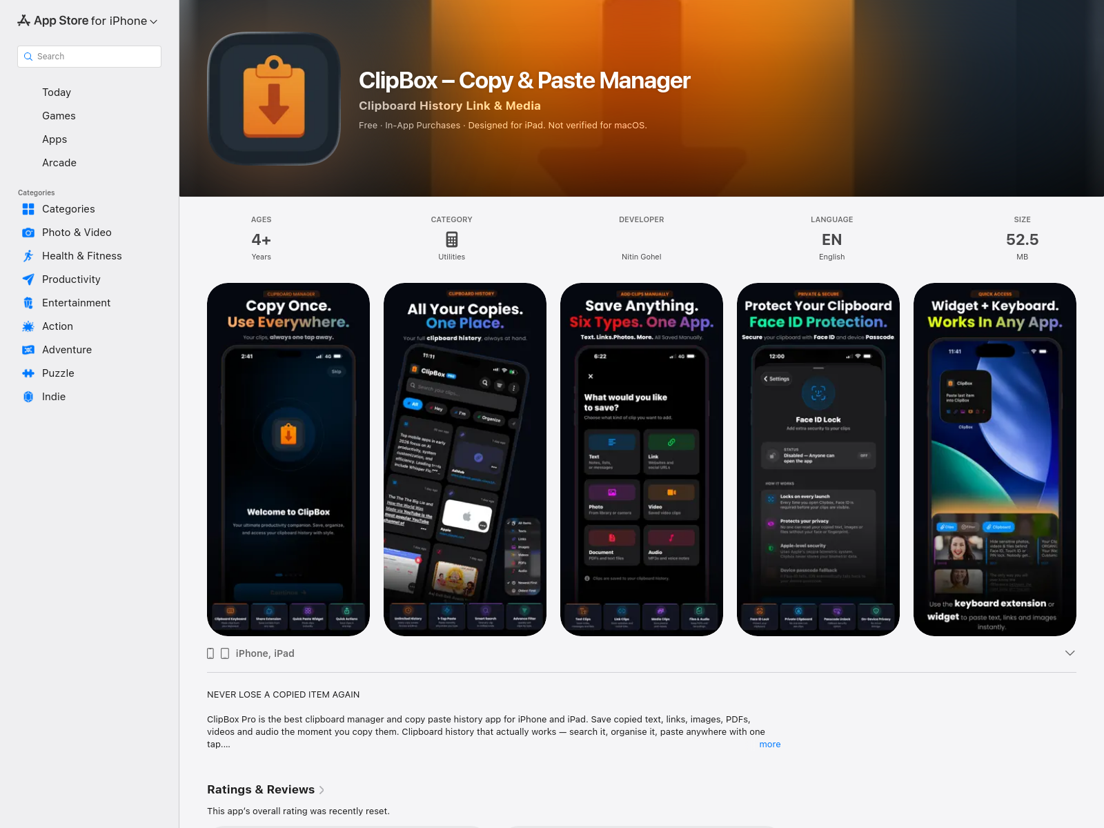 ClipBox是一款支持多格式剪贴板历史管理的iPhone应用,可快速调用文本、图片、视频、PDF等内容。