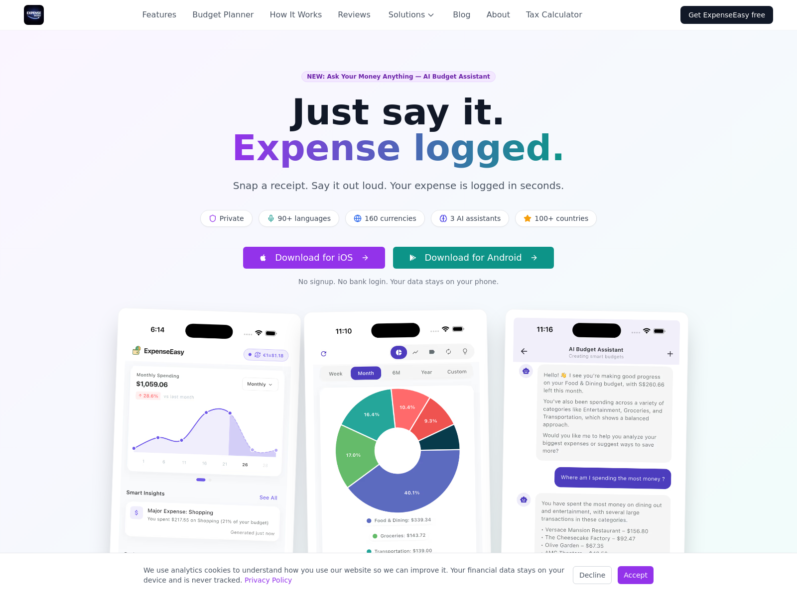 ExpenseEasy是一款本地化个人财务管理工具,支持实时扫描收据、上传账单,并通过简单提问查询支出详情。