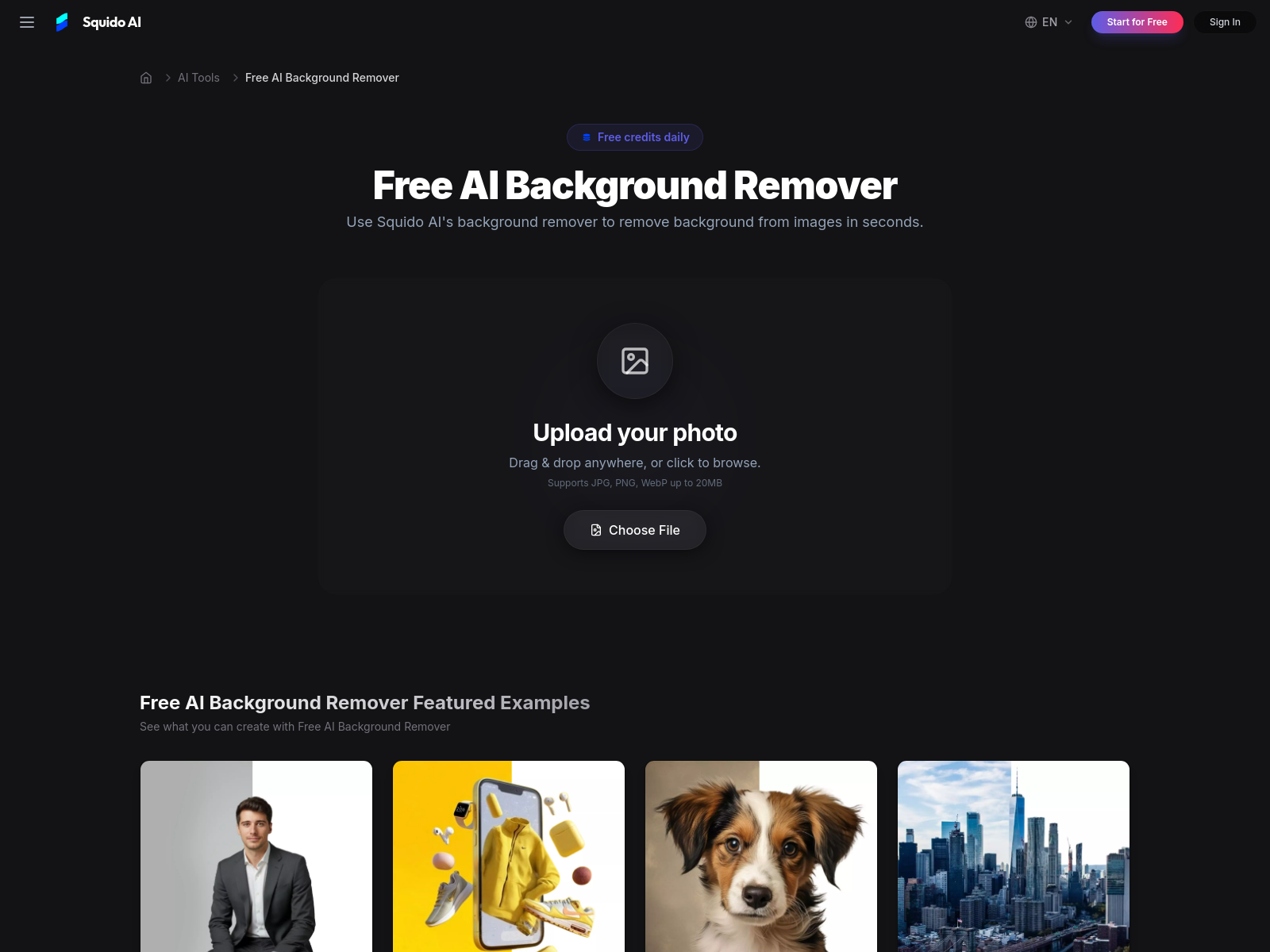 Squido AI Background Remover是一款支持发丝级精度的AI抠图工具,开箱即用,无需注册,适用于设计师和独立开发者快速处理图片素材。