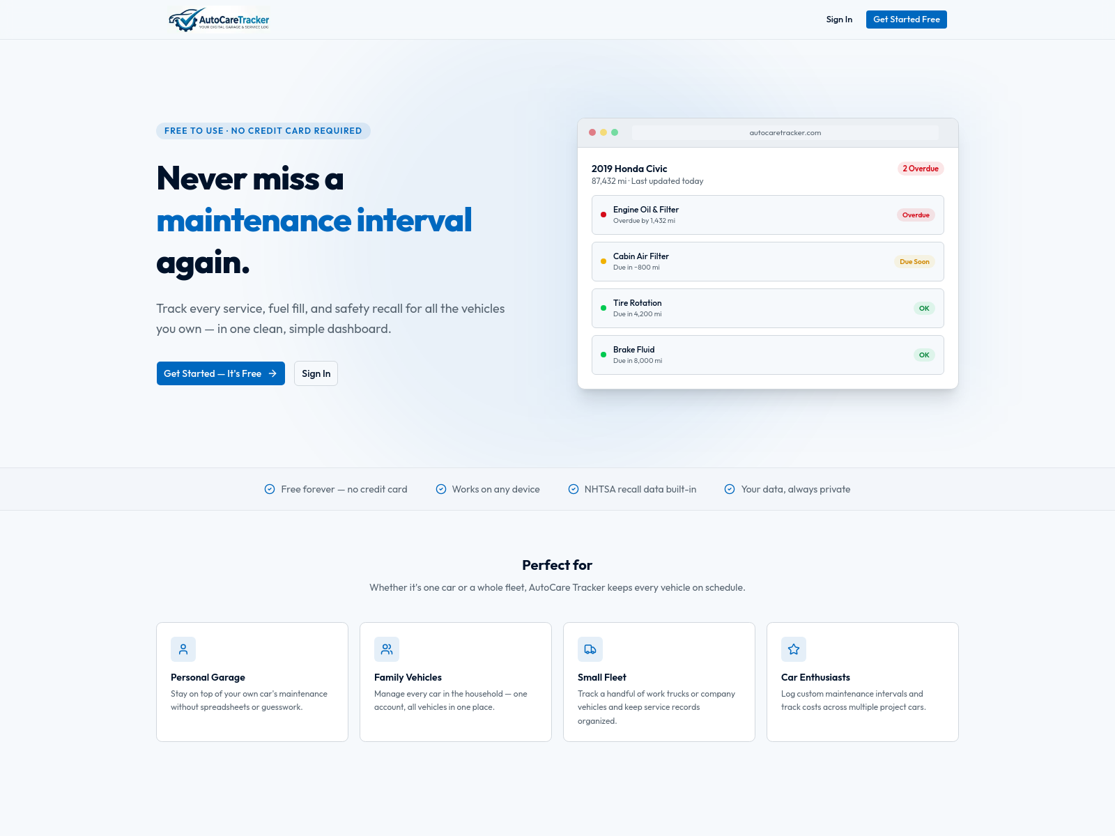 AutoCareTracker是一款为家庭车辆维护设计的综合性管理工具,支持VIN自动解析与智能保养提醒。